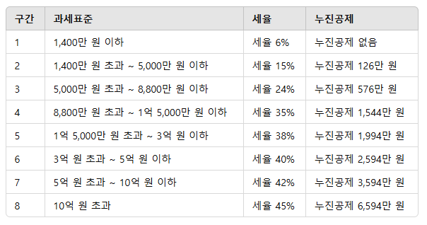 2025년을 기준으로 8개의 구간으로 나뉘어 있습니다. 각 구간에 따라 세율이 다르게 적용되며, 이 구간을 정확히 이해하는 것이 중요합니다.
