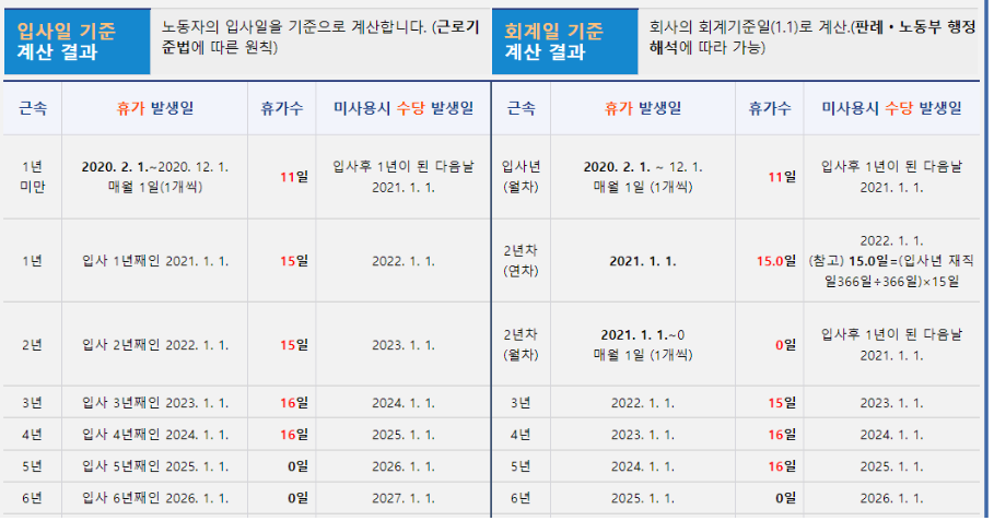 해당 계산기는 입사기준일 그리고 회계기준일 2가지로 계산해주기 때문에 매우 유용합니다.