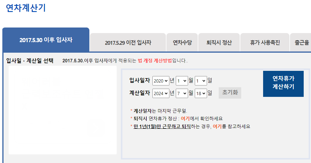 연차휴가일수 계산기는 많은 사이트에서 운영하고 있는데요 제가 사용하는 연차휴가일수를 추천해드리도록 하겠습니다.
