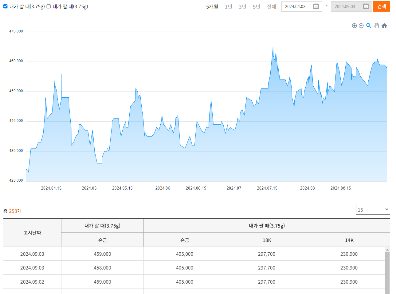 오늘의 금 한돈 가격