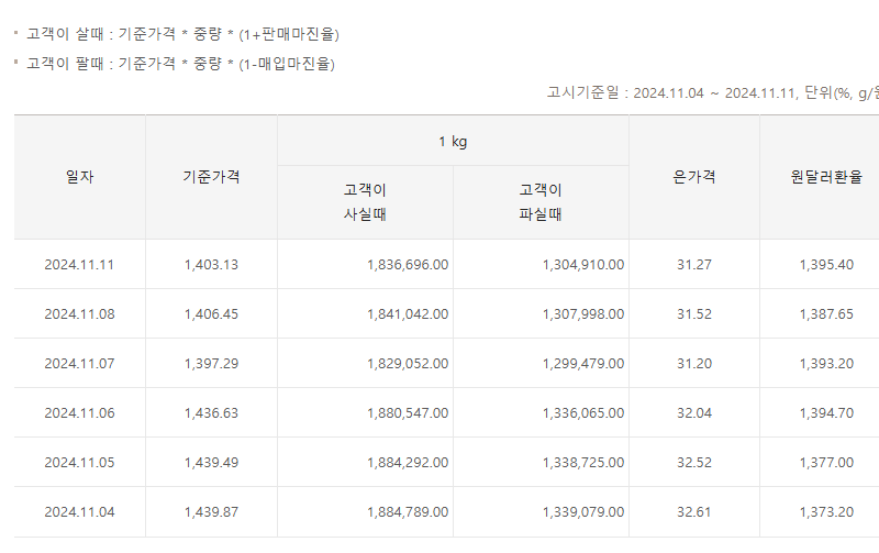 은 시세 1kg 가격