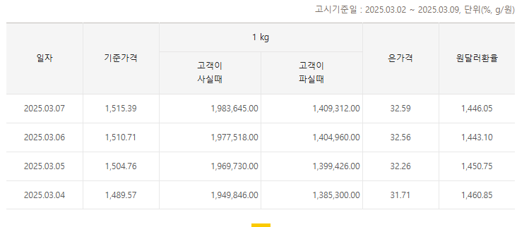 은 1kg 시세는 시장에서 거래되는 순은(99.9% 순도)의 1kg당 가격을 의미합니다.