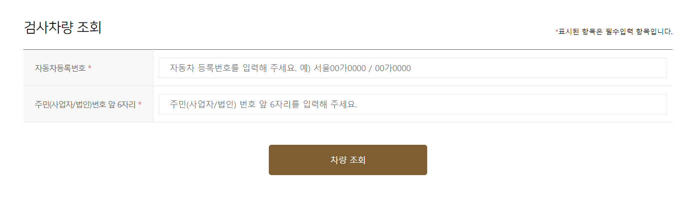 해당 사이트의 경우 자동차 검사를 할 수 있는 곳으로 로그인을 하지않아도 동의 절차와 함께 차량 주인의 차량번호와 주민등록번호를 입력할 경우 바로 확인해볼 수 있습니다.