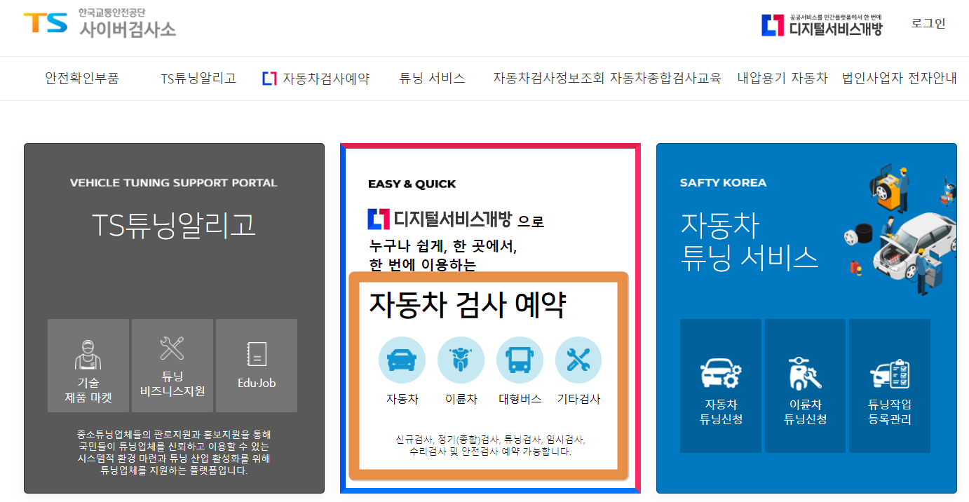 국토부에서 제공하는 사이버 검사소 에서는 [자동차 검사 예약]을 통해 기간을 확인하고 기간 내 정기검사가 필요할 경우 예약까지 바로 진행 할 수있습니다.